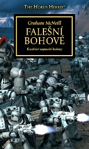 Román Falešní bohové pojednává o Horově pádu. V komplikovaném spiknutí zosnovaném přívrženci Chaosu je Horus na měsíci planety Davin zraněn cizáckou, Chaosem otrávenou zbraní. Jeho poručíci jej v zoufalé snaze o jeho záchranu odnesou do chrámu na Davinu. Chrám je však tajně zasvěcen Chaosu a jeho služebníci se postarají, aby se Horus zdánlivě vyléčil, ve skutečnosti však jen ještě více podlehne zhoubnému působení své rány. Nakonec se postaví proti svému 'otci', Císaři. Horovo odpadlictví pak spustí sled událostí, které změní galaxii navždy.